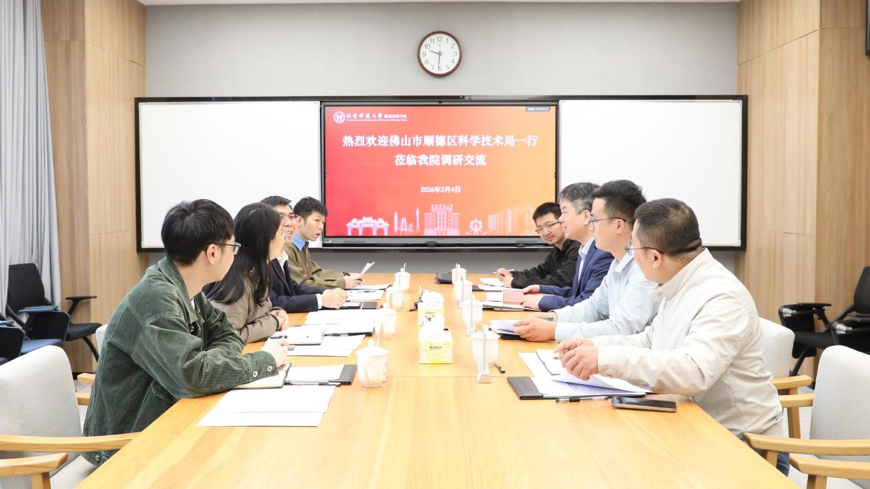 3月4日,顺德区科学技术局副局长梁恒枝一行到北京科技大学顺德创新学院调研,双方围绕高层次人才引进、科技创新合作等进行座谈交流。学院院长何新波出席座谈会。