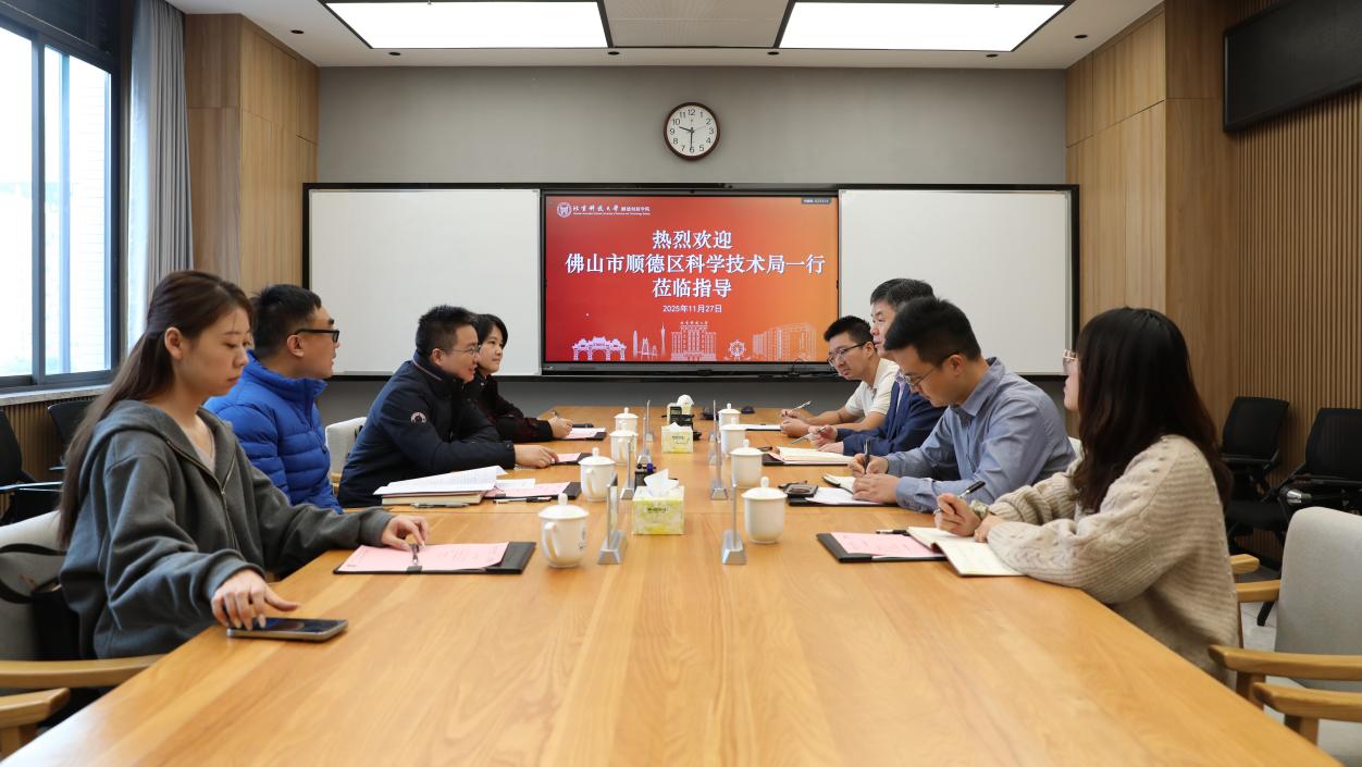 11月27日,顺德区科技局党组书记、局长欧胜军一行莅临北京科技大学顺德创新学院调研,双方围绕区域协同创新、科技创新引领现代化产业发展等进行座谈交流。学院院长何新波参加调研。