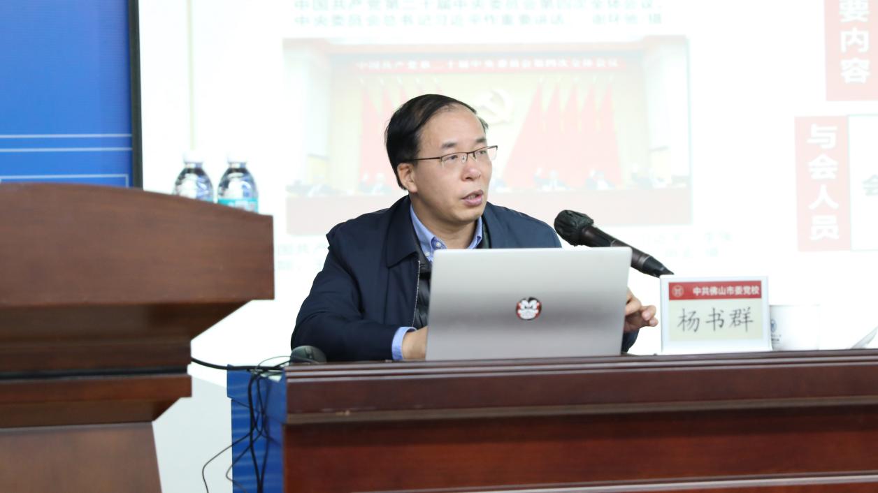 为深入学习贯彻党的二十届四中全会精神,切实把师生思想和行动统一到全会精神上来,11月21日上午,北京科技大学顺德创新学院举行“学习贯彻党的二十届四中全会精神暨党务干部履职能力提升培训班”第三讲。本次培训特邀中共佛山市委党校杨书群教授作题为“深学笃行党的二十届四中全会精神 接续推进中国式现代化”专题辅导。顺德创新学院院长何新波与师生党员共同参加了学习。